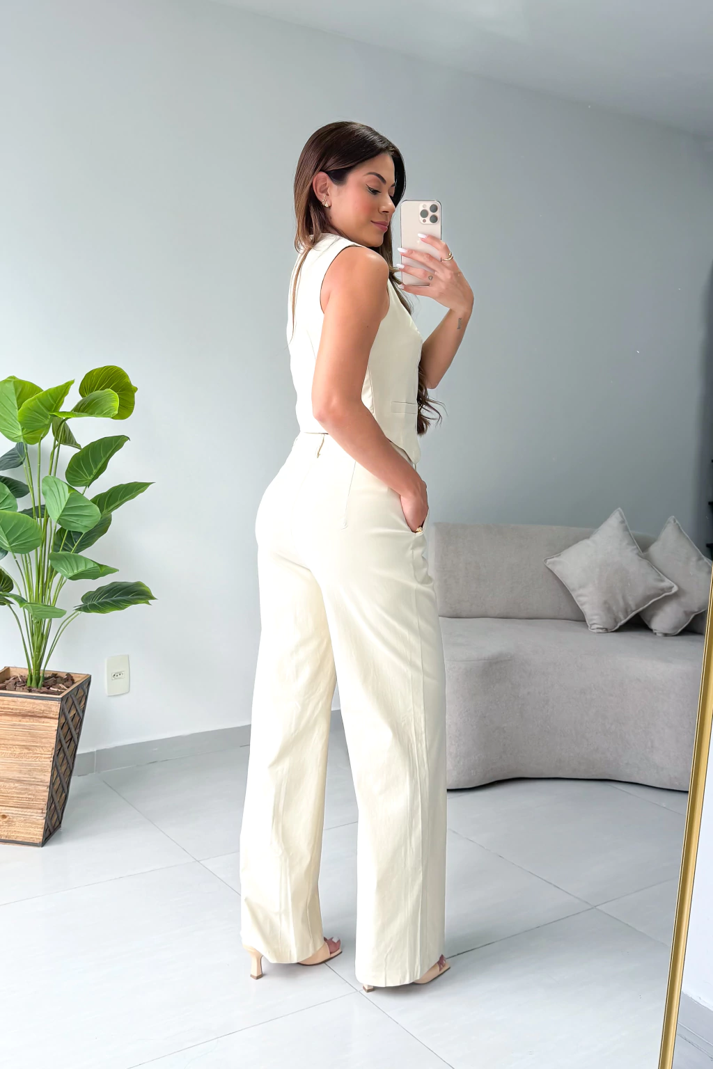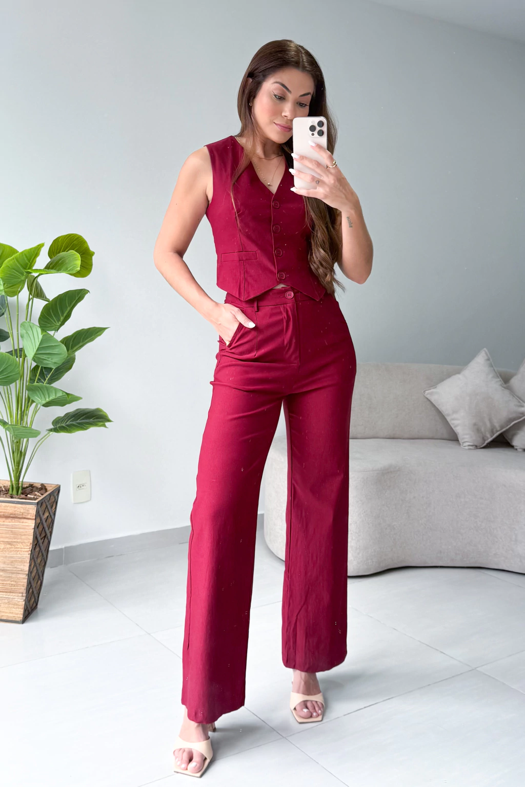 O Conjunto Loren une a leveza do algodão com a sofisticação do corte alfaiatado. Composto por colete estruturado e calça de cintura média, ele traz elegância sem esforço e caimento impecável. Ideal para compor looks versáteis, do casual ao refinado.
